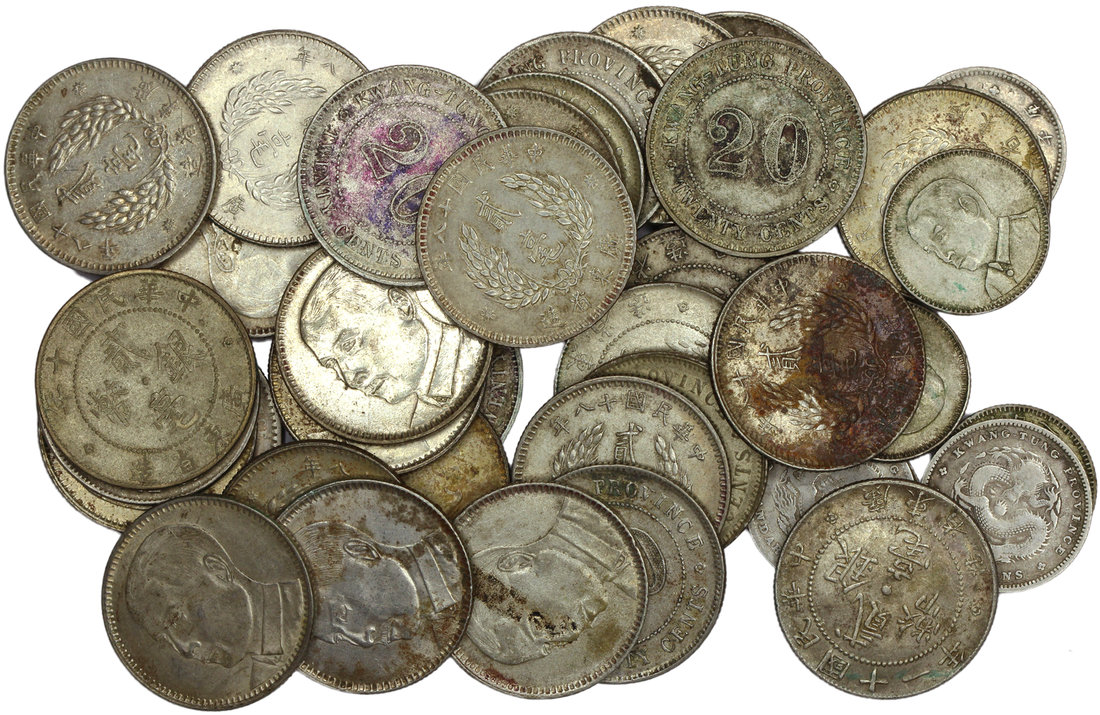 China, Kwangtung Province, a group of 31 silver fractional coinage from the Qing to Republican era, consisting of 8x silver 10 cents and 31x silver 20 cents, all were struck in Kwangtung Province,