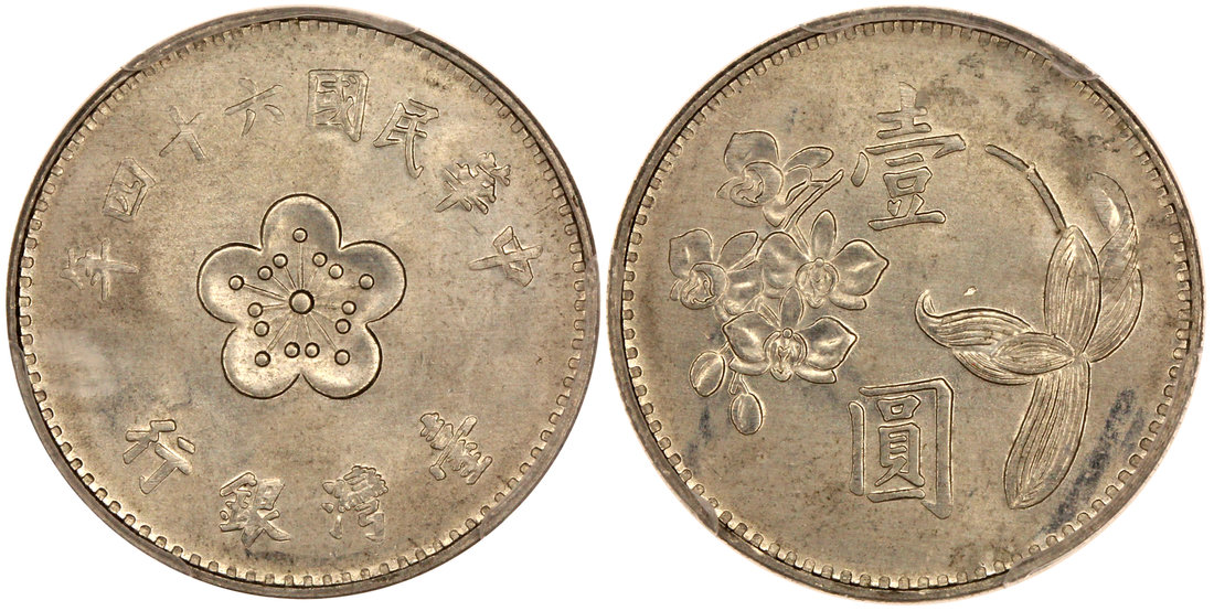 Taiwan, aluminum 1 yuan, 1975, specimen, PCGS SP64, rare.