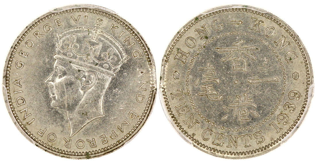 Hong Kong, a MINT ERROR 10 cents, 1939-KN, 'Clipped Rim', King George VI on obverse,