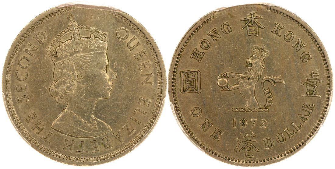 Hong Kong, a MINT ERROR $1, 1972, 'Clipped Rim', Queen Elizabeth II on obverse,