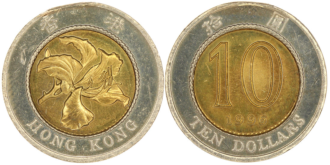 Hong Kong, a MINT ERROR $10, 1996, 'Straight End Clip', Bauhinia on obverse,