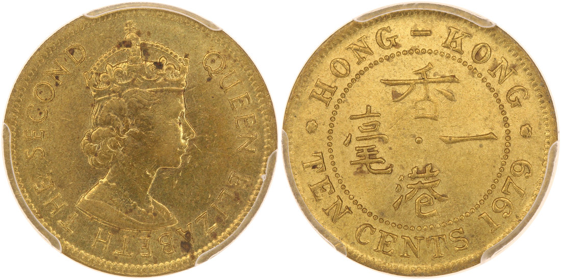 Hong Kong, MINT ERROR, 10 cents, 1979, struck on a wrong planchet weighing 2.95 grams,