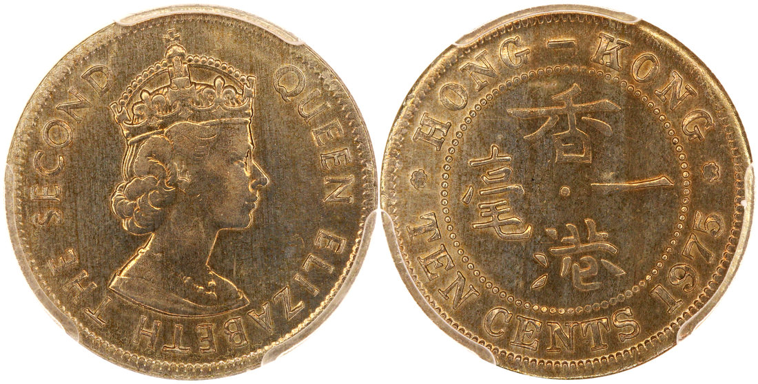Hong Kong, MINT ERROR, 10 cents, 1975, erroneously struck on a cupro-nickel planchet,