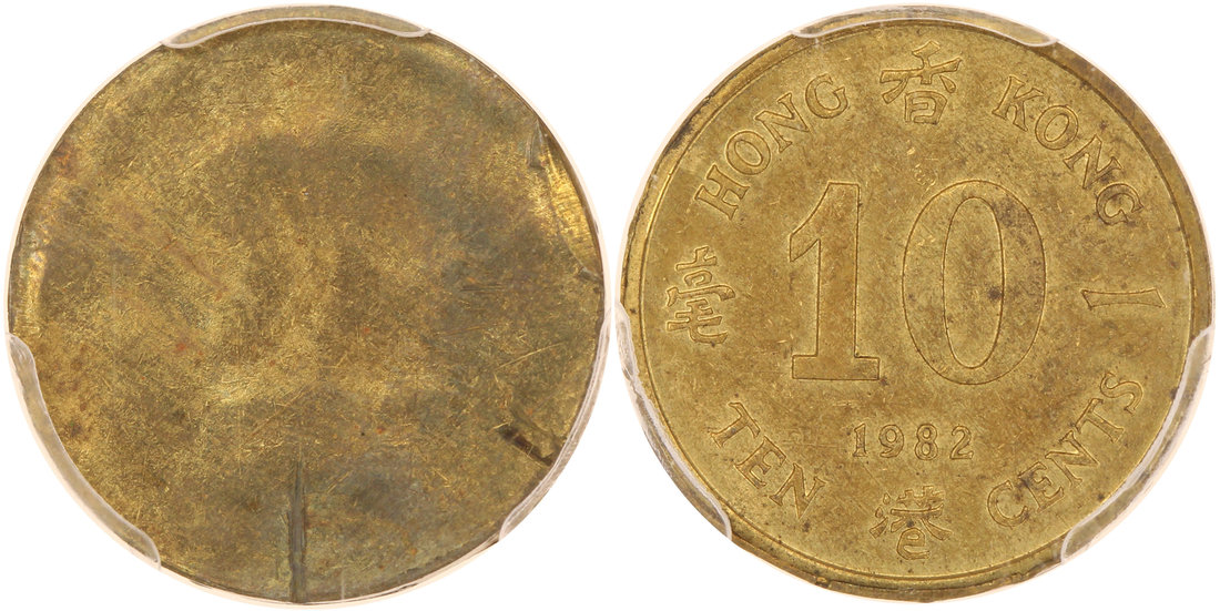 Hong Kong, MINT ERROR, 10 cents, 1982, struck on the reverse only, the obverse is blank,