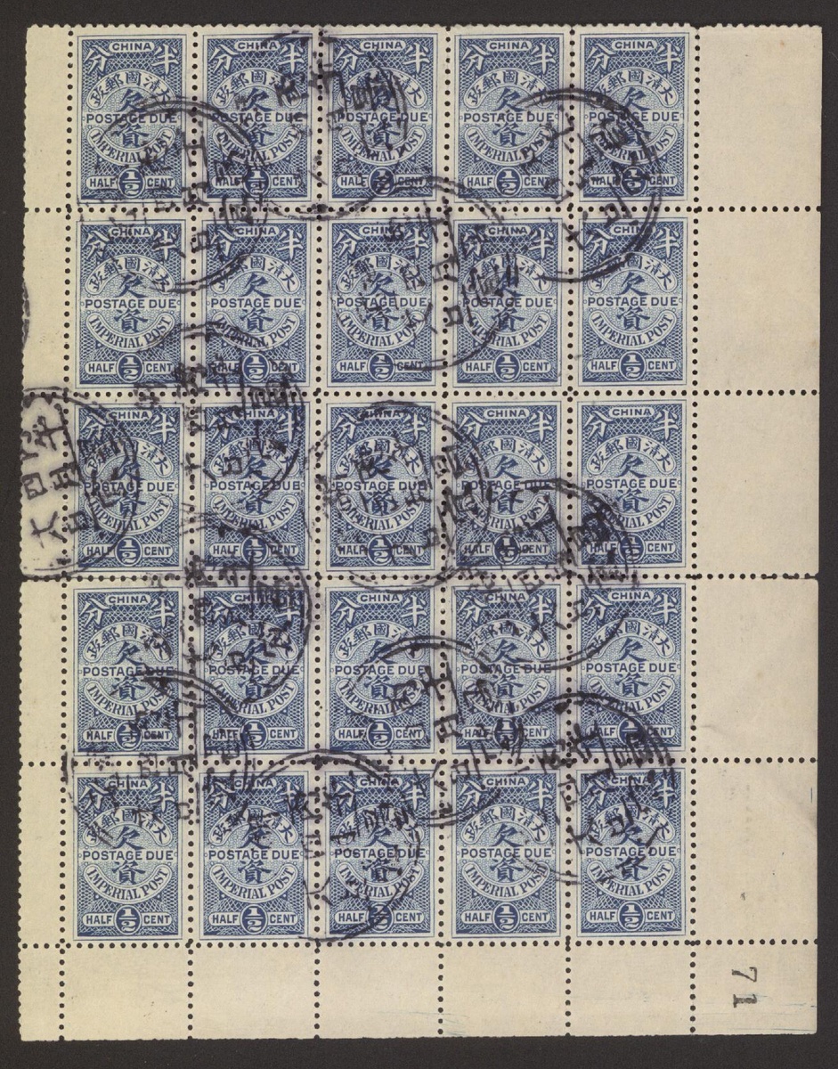 1904 Postage Due ½c. blue, a pane of 25 with sheet No.71, all tied by Ichang c.d.s.