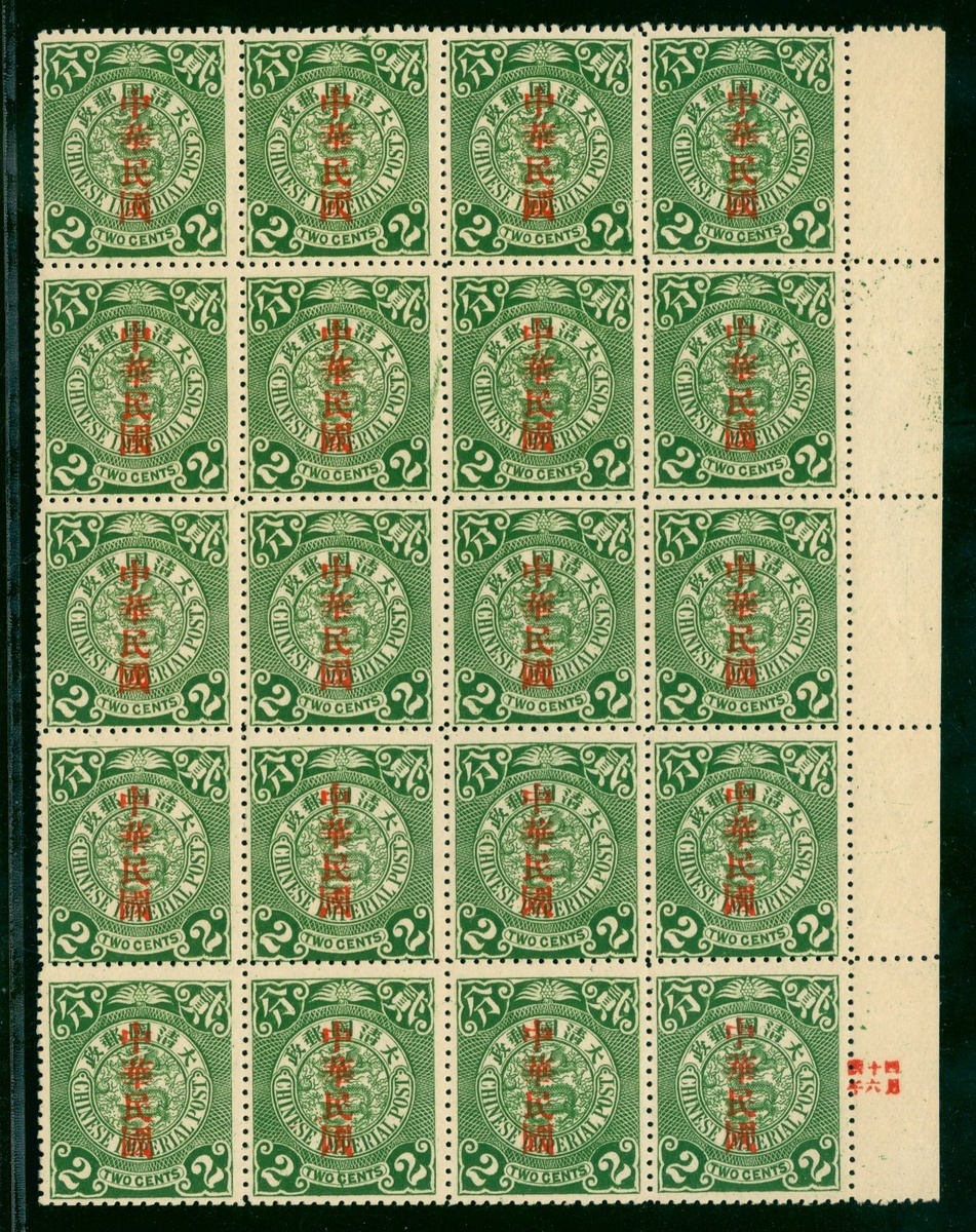 2c. deep green overprinted with large ‘KUO’, pane of twenty with right margin, unmounted mint with fresh original gum. Chan 168
