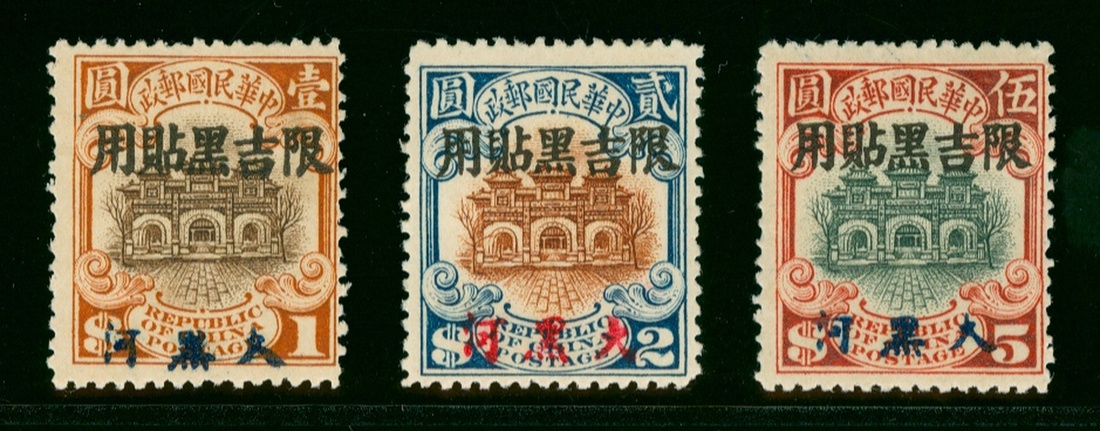 1927 Junk overprinted ‘Limited For Used In Ki-Hei’ $1,$2 and $5 also Taheiho local overprinted , very scarce. Chan KH18-20