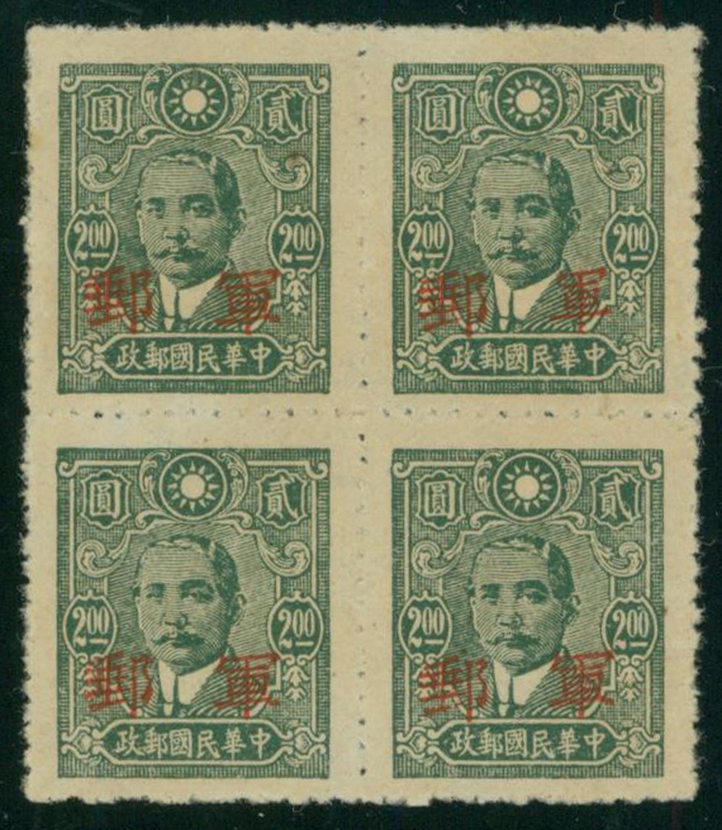 1942-44 Central Trust Print $2. blue green Dr. Sun, overprinted "Military Post" block of 4, unmounted mint. Chan M12