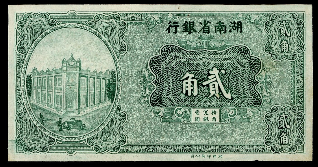 民國時期湖南省銀行貳角正面試印票,AU
