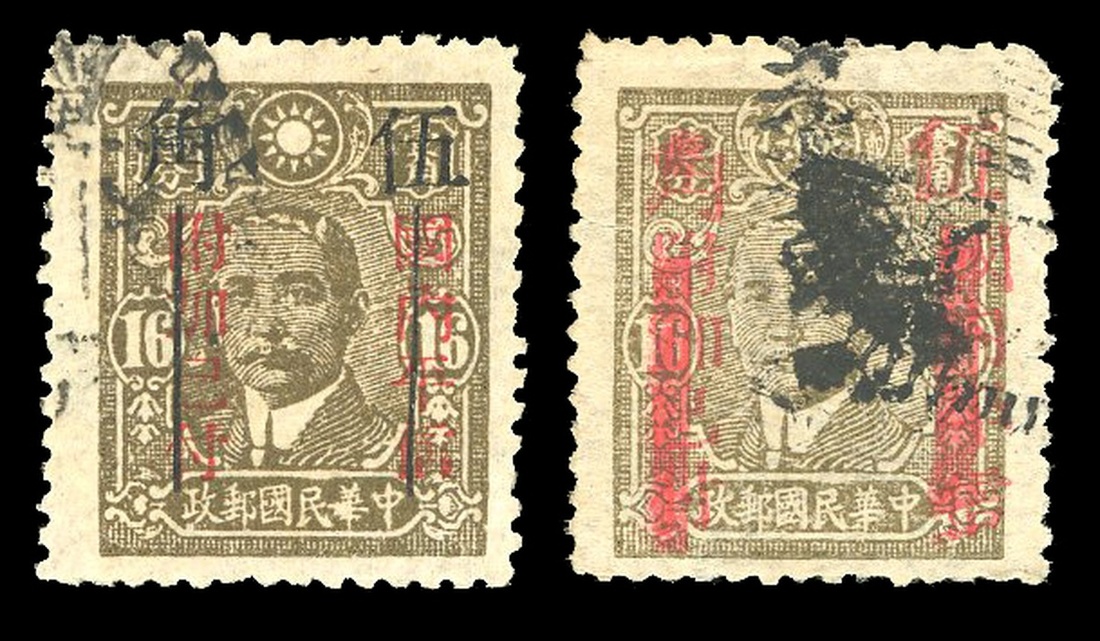 1943 A set of 14 used Central Trust print, Dr.Sun 16c. surcharge of 50c. with 2 vertical Bars. By different place, included Yunnan, kansu, Fukien, Western and Eastern Szechwan, Hunan etc. Shensi with left margin, fine to good.