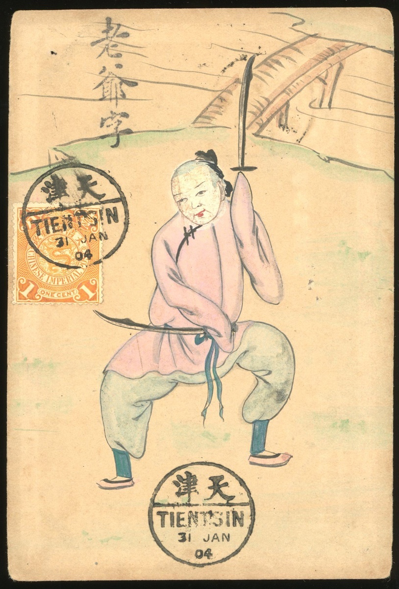1904 (31 Jan.) China 1c Pre-stamped Postcard + 1c coiling stamp, with hand painting on reverse, tied by Tientsin c.d.s.