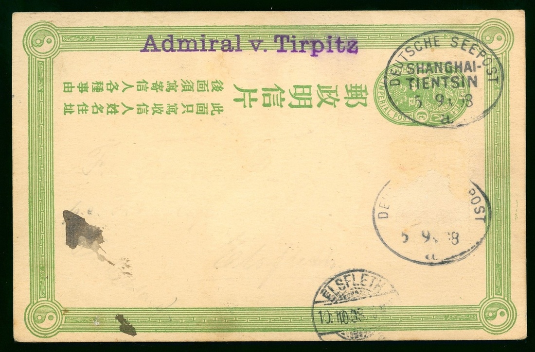 1898 (5 Sept.) China 1c Pre-stamped picture postcard, tied by Deutsche Speedpost Shanghai - Tientsin c.d.s.