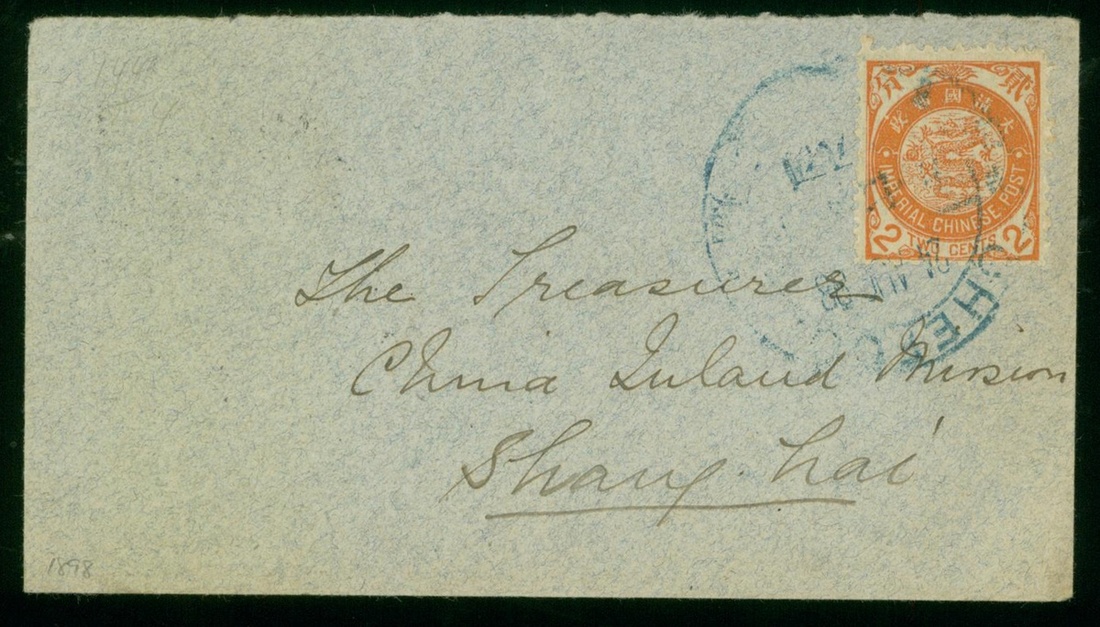 1898 (24 Aug.) envelope to Shanghai bearing I.C.P. coiling dragon 2c tied by Chefoo dollar dater, with Shanghai Local Post c.d.s. on reverse. fine.