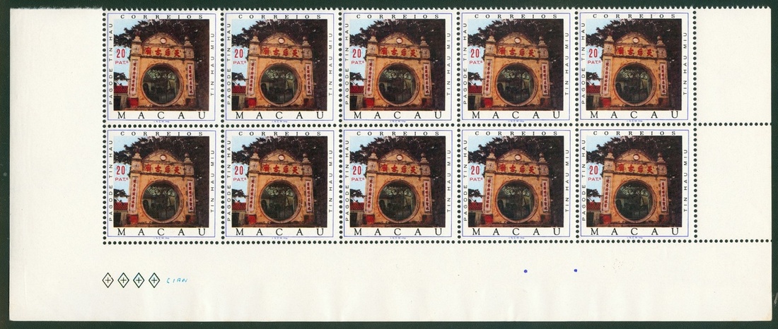 1976 Macau Temple of Macau stamp set, block of 10, unmounted mint