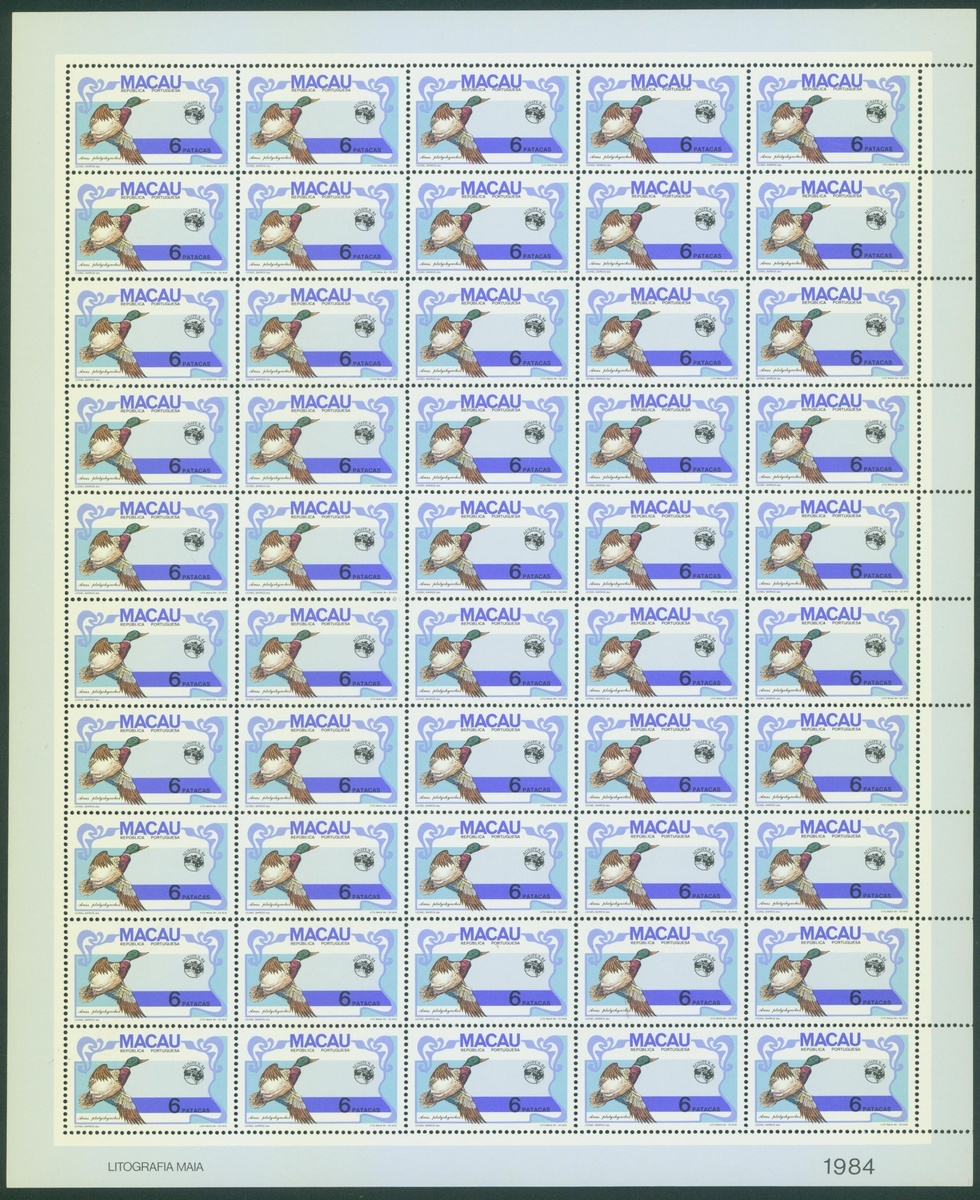 1984 Macau Bird of Macau, full sheet of 50 stamps, unmounted mint