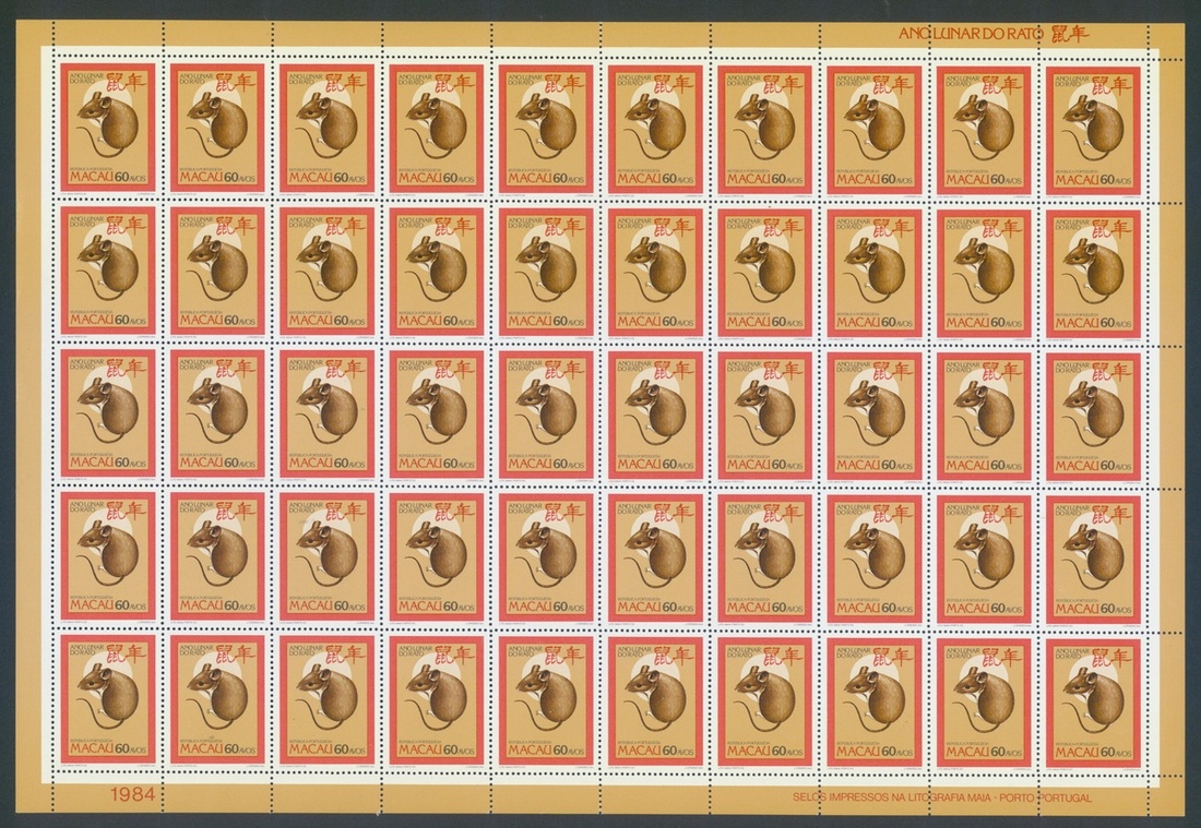 1984 Macau Chinese New Year, Year of the Rat, full sheet of 50 x 2 sheets, unmounted mint
