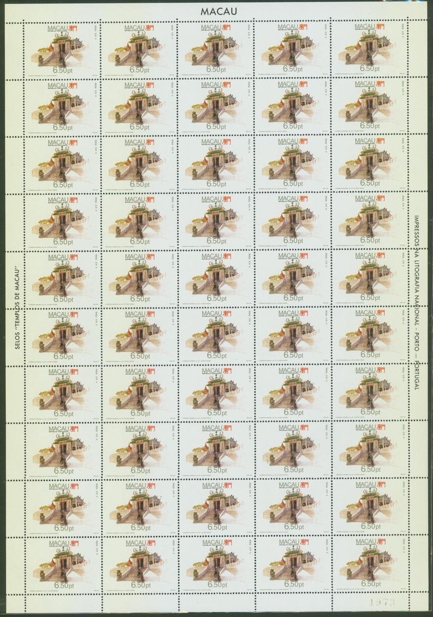 1992 Macau Temple of Macau (1st series), full sheet of 50 stamps, unmounted mint
