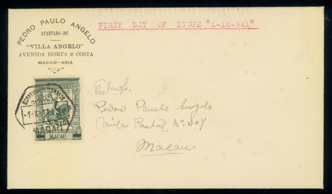 1941 (1 Oct.) Macau Imperio Colonial Portugues 3a on 6a surcharge stamp FDC, very rare, only few produced.