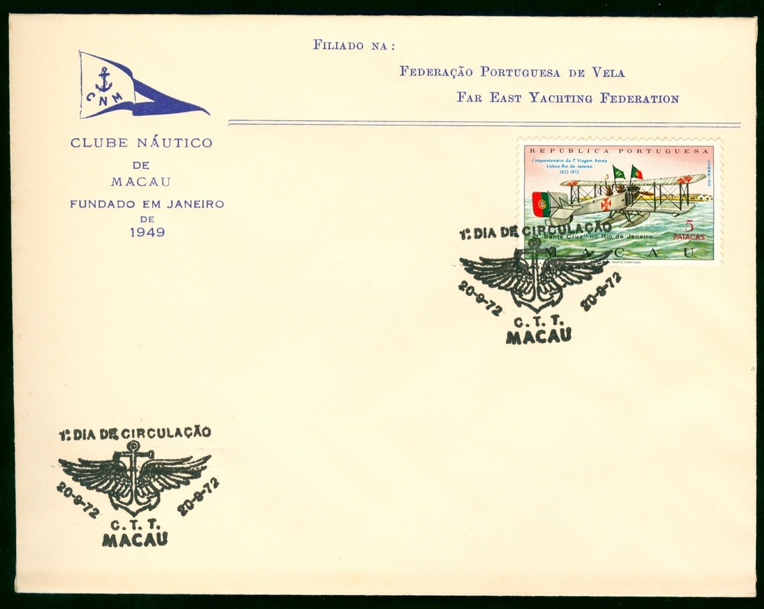 1972 Macau 50th Anniversary of First Flight from Lisbon to Rio De Janeiro First Day Cover