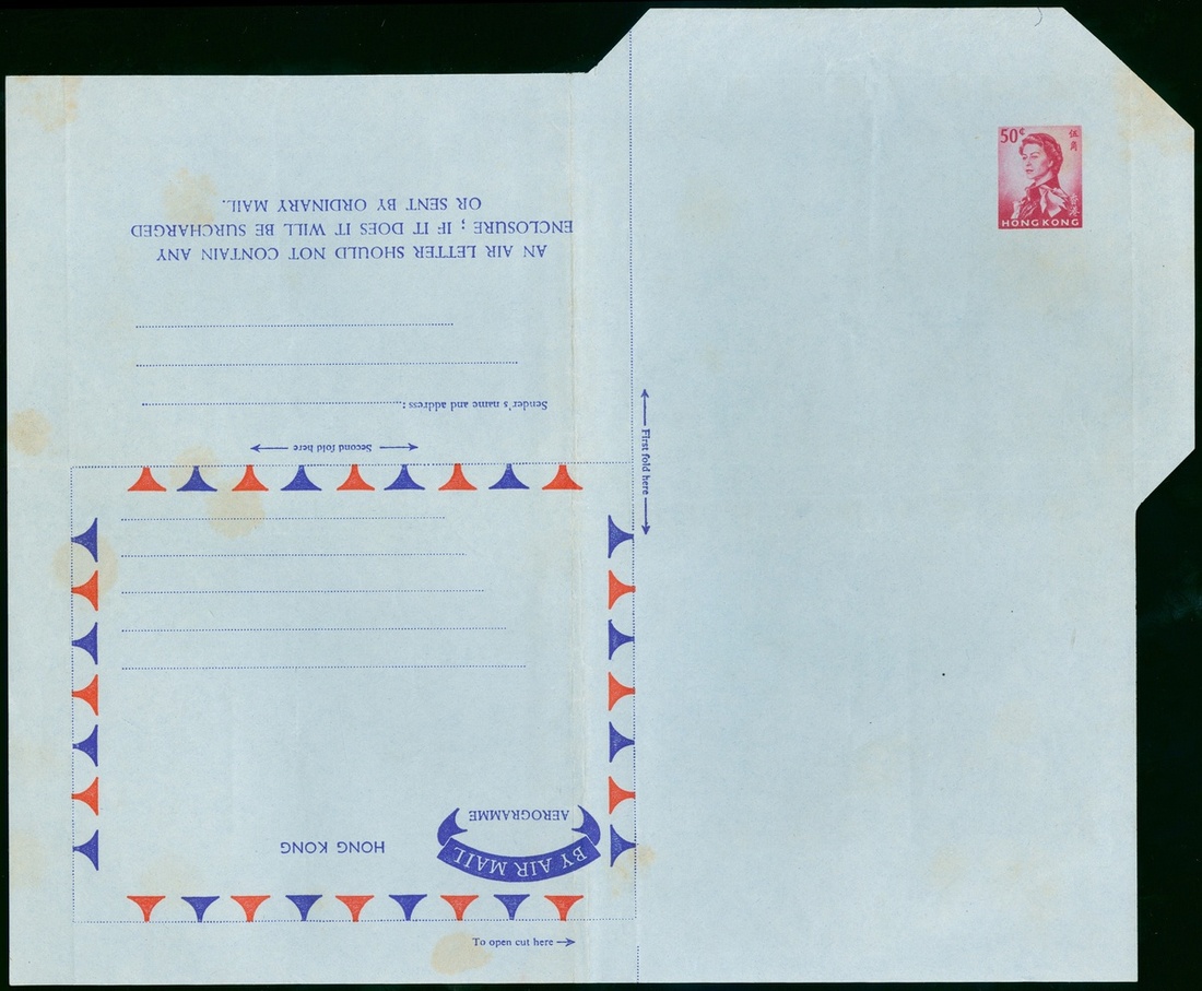 1963 Hong Kong Queen Elizabeth II, Annigoni Portrait, Air-letter x 13, with color omitted, stamp printed on back side, etc. varieties, unused, folded and some with toning spots