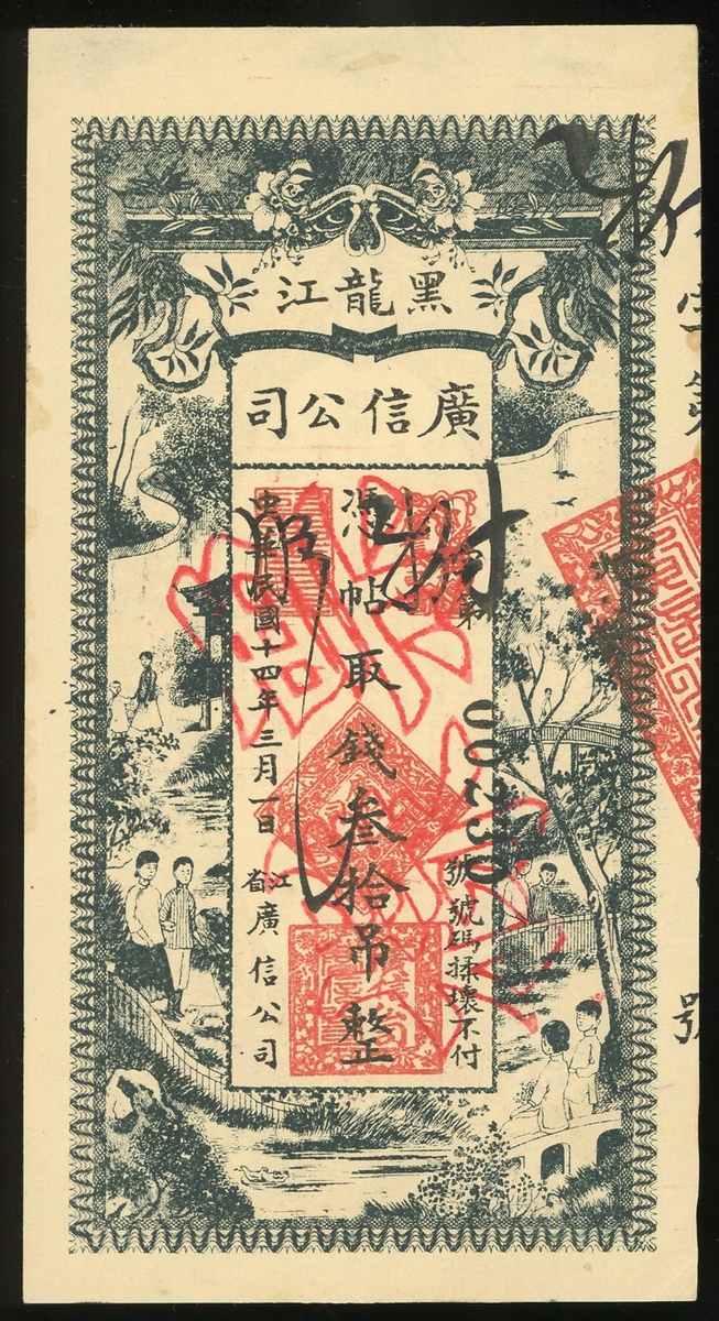 Kuang Hsin Company, Heilungkiang, 30 tiao, specimen, 1925, serial number 00230, (Pick S1611), strong colour, glue stain on reverse about uncirculated.