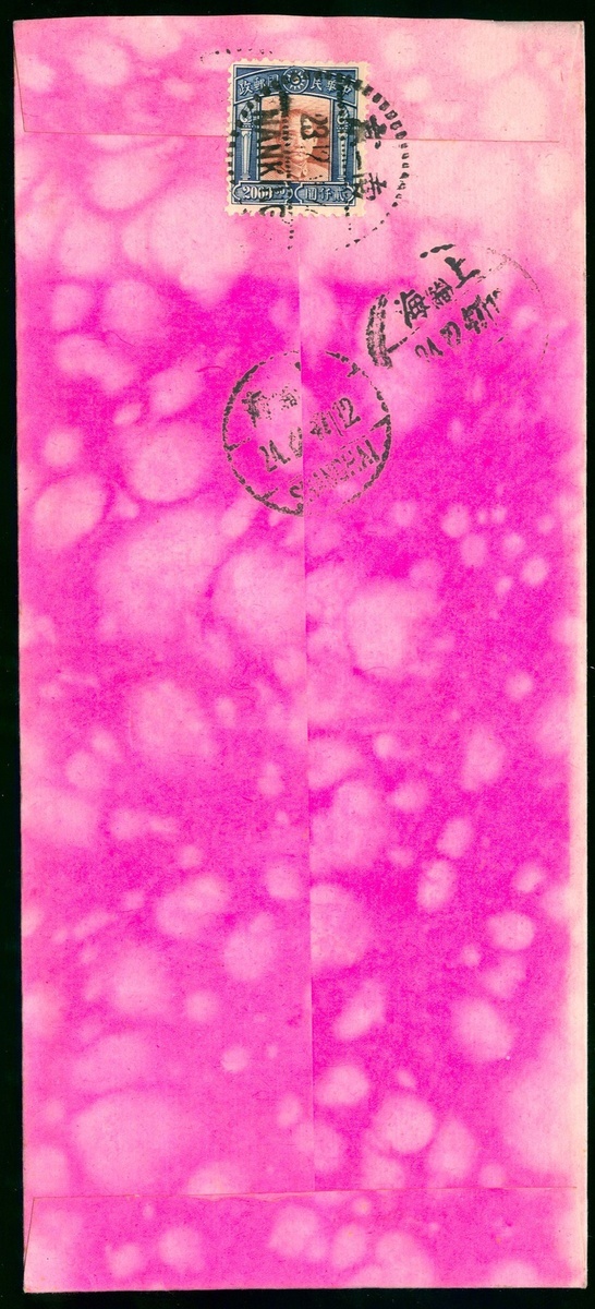 1947 (23 Dec.) to Shanghai art cover, on the reverse, bearing Dr.sun $2,000 tied by Nanking c.d.s., Shanghai arrival c.d.s. (24.12)