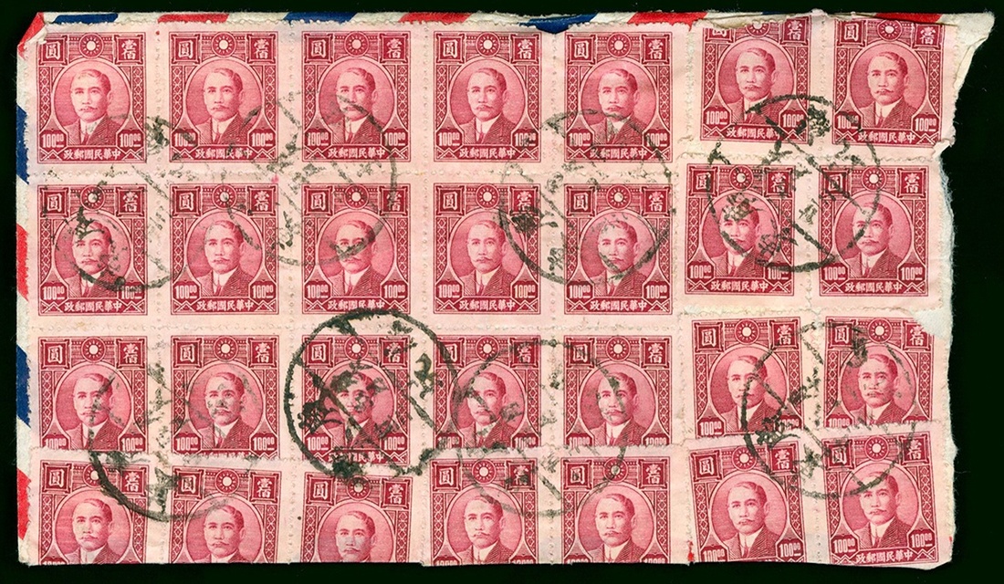1947 (23 May) an air mail cover to U.S.A. bearing SYS $100 x 30 tied by Lohang c.d.s.