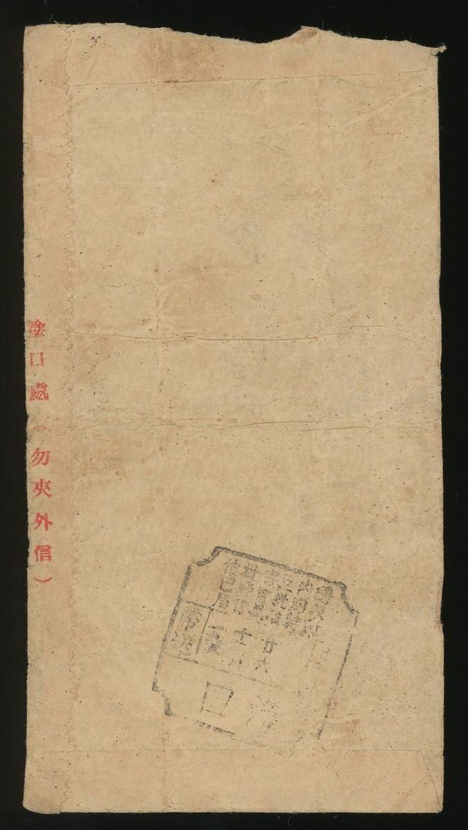 民國時期僑批封2件:1,1948年新加坡寄汕頭中式美術封1件,銷汕頭6月29日專人代送僑批專用郵資已付戳,附原信;2,1948年海南匯通信局寄新加坡民興行信局航空僑批封1件,銷海口12月26日專人帶送僑批專用郵資已付戳,均保存完好,海南僑批較少見