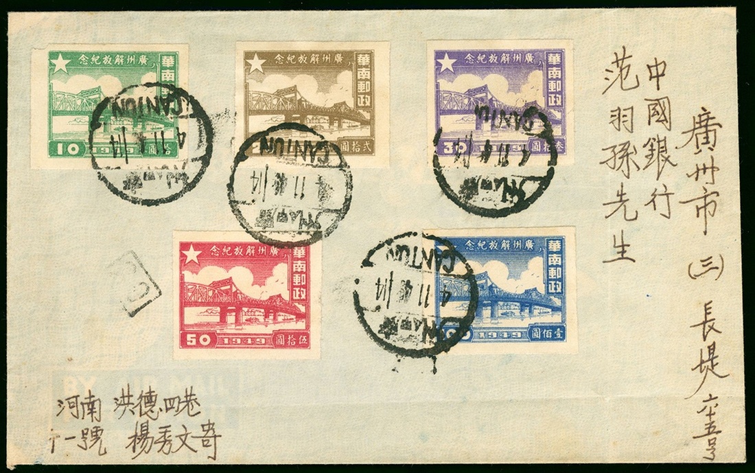 1949 (4 Nov.) Canton to local first day cover, bearing full set of Liberation of Guangzhou Issue, tied by Canton c.d.s.