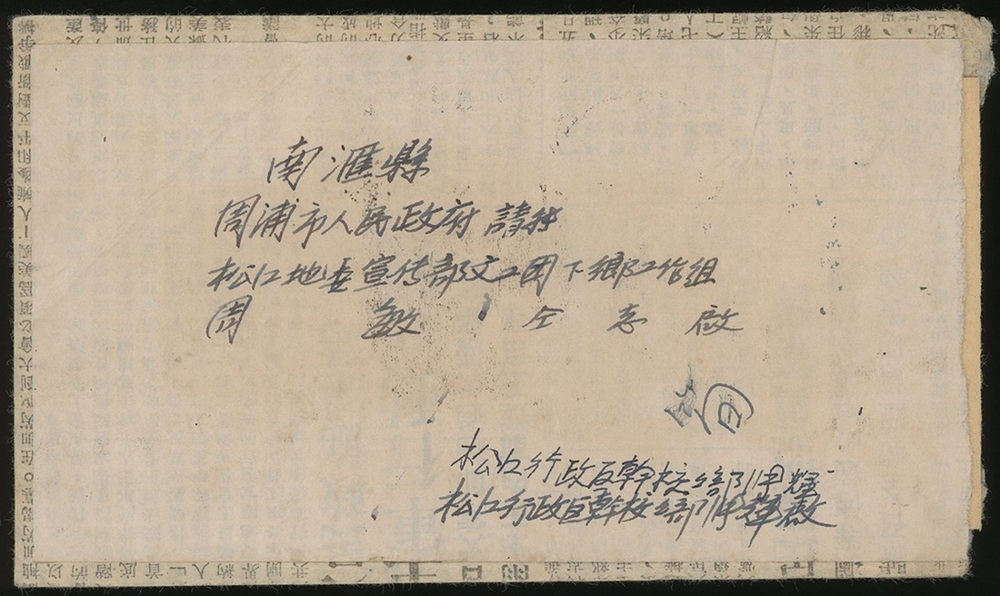 1949年上海寄南匯縣報紙封1件,貼華東解放區交通圖30元,進軍圖370元各一枚,銷上海9月11日戳,另有上海次日機蓋到達戳,內附原信,保存完好