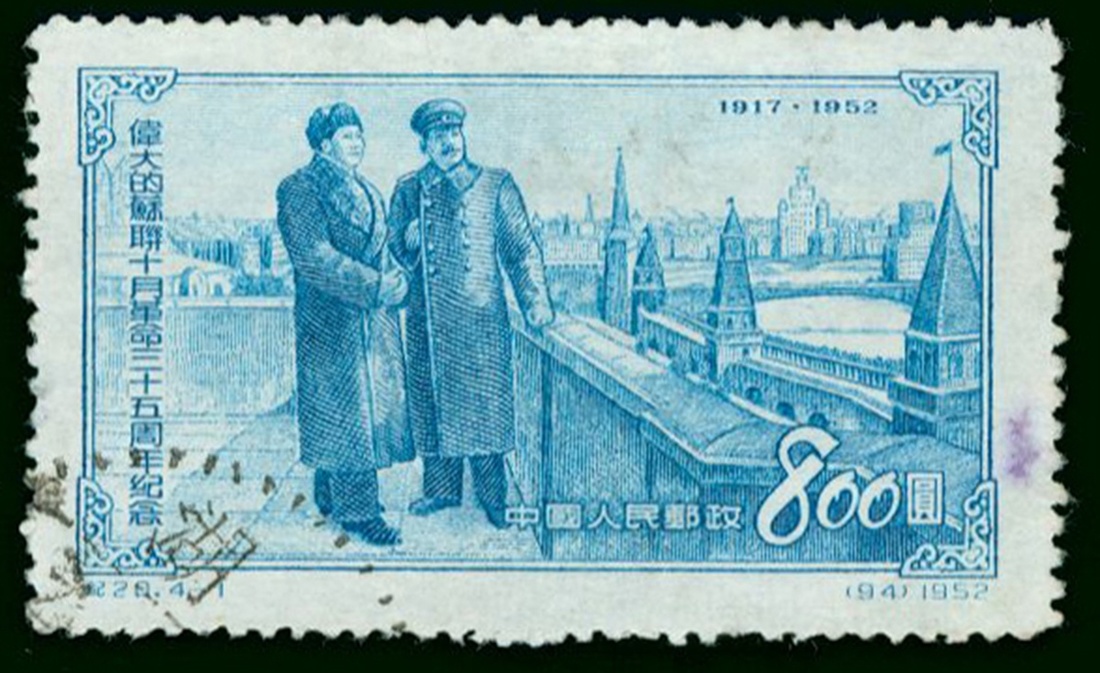 1952 (C20) 35th Anniv. of Great October Revolution of Soviet Union (Unissued), $800 Chairman Mao & Stalin, used, fine. Yang C94