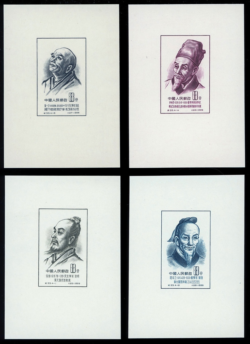 1955 Scientist of Ancent China. (1st series) (C33m) , complete set of four miniature sheet, without gum as issued, unused and very fine. Yang C125m-128m