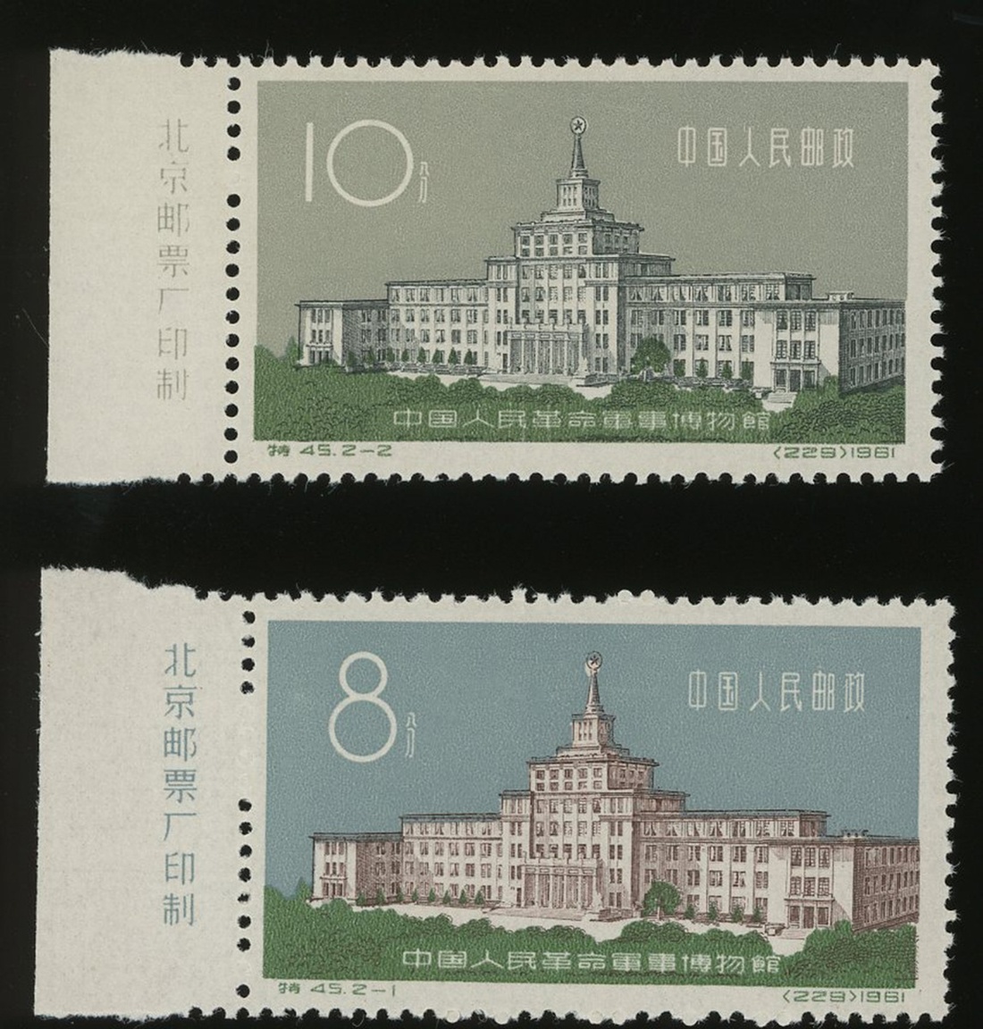 1961年特45革命軍事博物館新票1套,8分為“229”錯號,均帶左廠銘邊紙,顏色鮮豔,原膠輕貼,上中品,少見