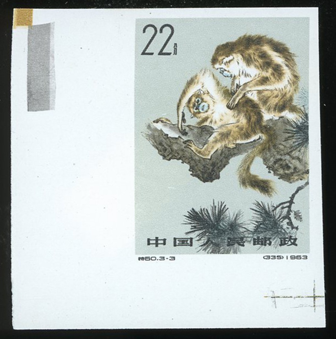 1963年特60金絲猴無齒新票1套,均帶左下直角邊紙,顏色鮮豔,原膠,上中品