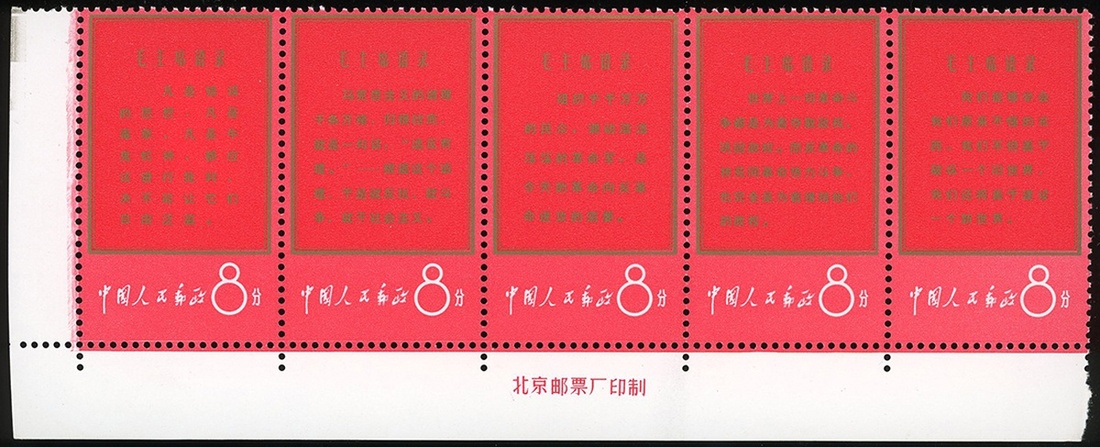 1967 Long live Chairman Mao's Thought (W1) complete set with imprint margin, fresh, golden strip with inor dull gold colour and hinged. Very fine to Fine.