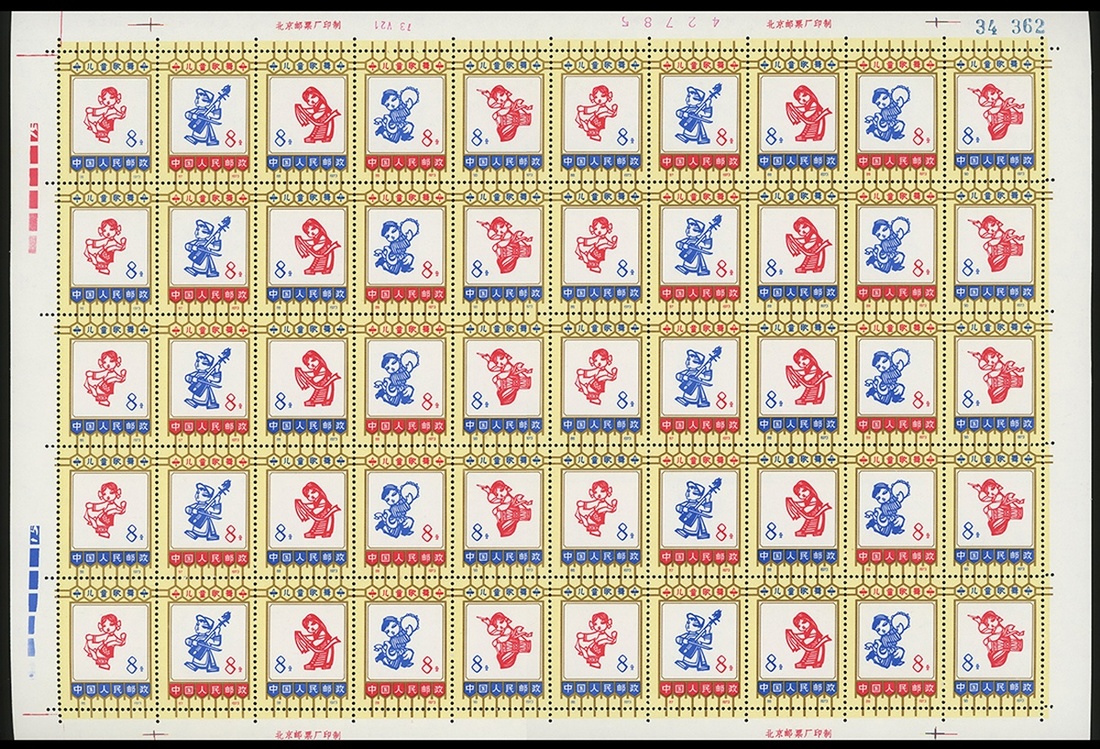 1973 (N19) Children's Song and Dances, complete sheet of 50. Yang N86-90