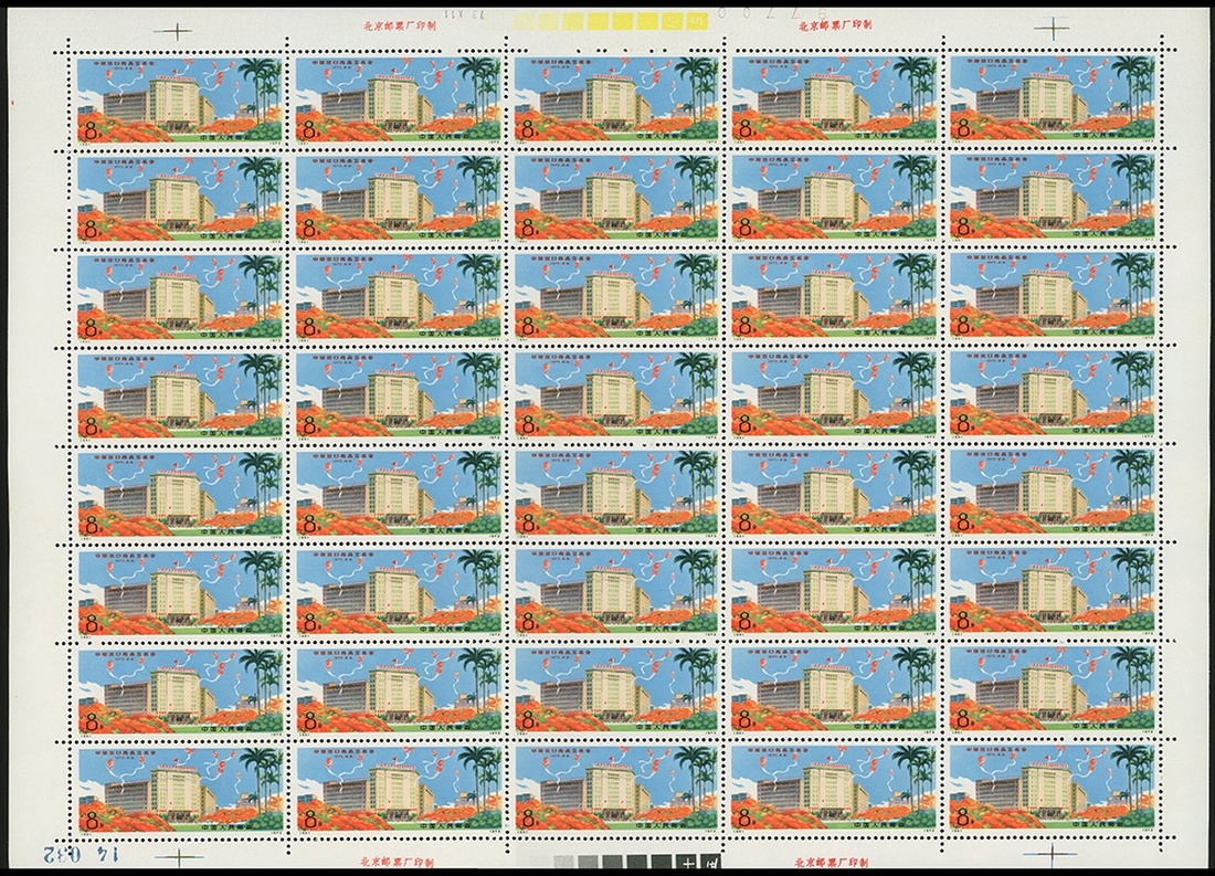 1973年編95交易會新票40枚全張1件,邊紙完整,顏色鮮豔,原膠,上中品