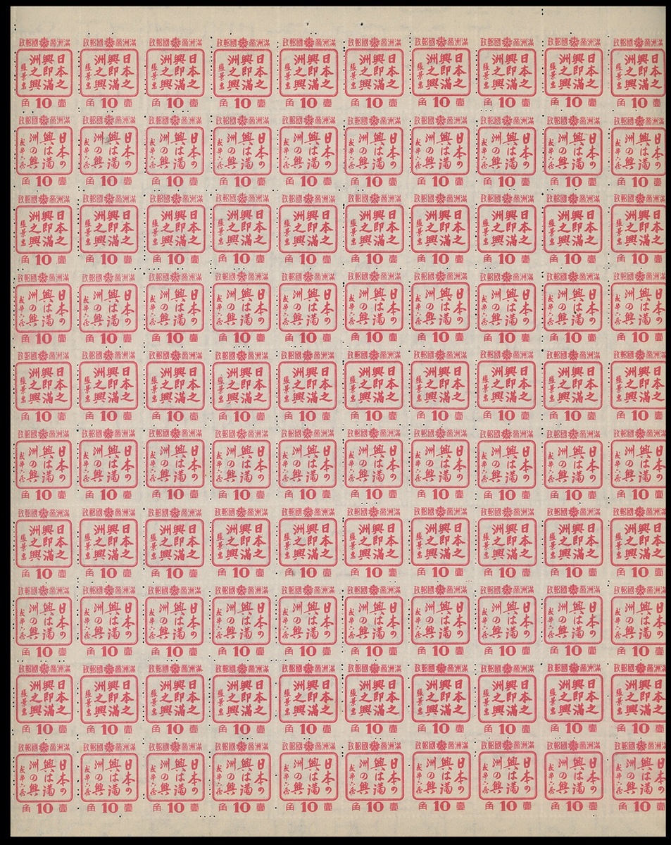 1943年偽滿郵票全張8件共計郵票800枚,品相不一,市場價值較好,請預覽