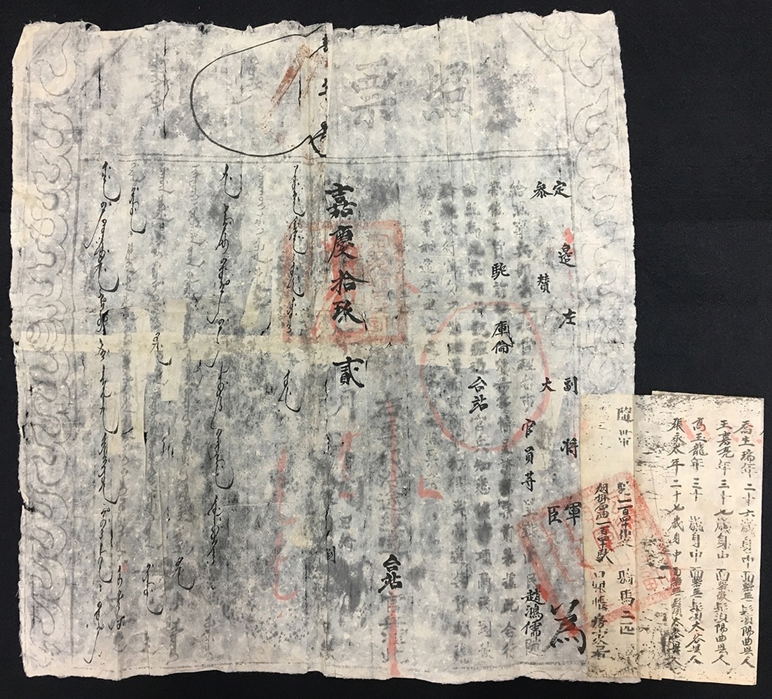 Qing dynasty 1796-1821 from Script with stamp to go through relay station or protect issued by the high official minister of Qing dynasty.