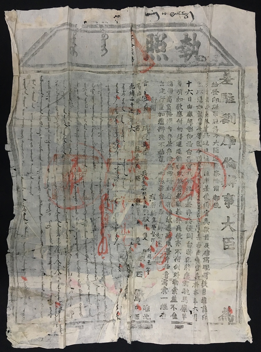 Script with stamp to go through relay station or protect issued by the high official minister of qing dynasty.