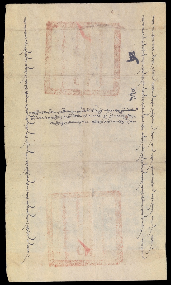 1872. From the Great general and graf Khejun Van, who was eligible to see the king and governs the soldiers of east hand. Sent to the graf and nobleman who is head of Khan-Uul assembly, who was also eligible to see the king and governs the soldiers of east hand. 300