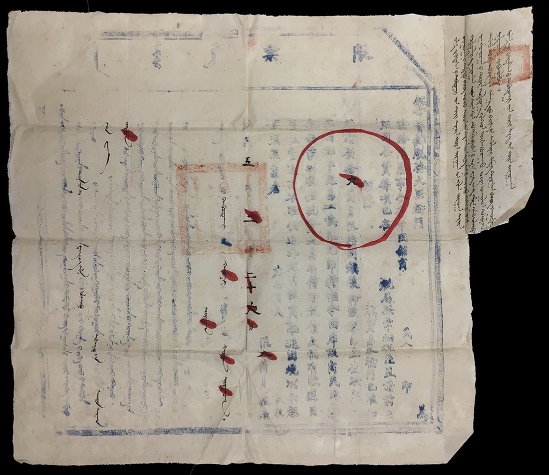清代欽命國立庫倫大臣衙門漢蒙文限票1件,蓋蒙古索音布關防,保存完好