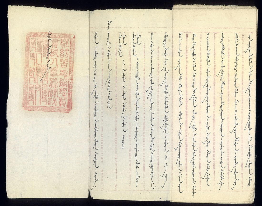 清代蒙古公文1件,寫滿蒙文,有漢蒙文駐紮庫倫辦理買賣人人事處關防,保存完好