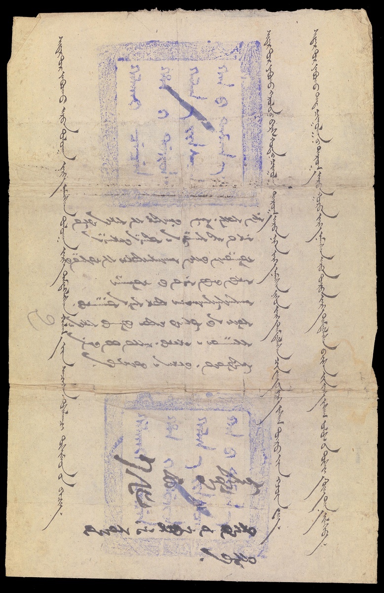 Script from the assistant clerk of Setsen khan of Khalkha, who was eligible to see the king. Sent to the graf Chin Van Beis who was head of Assembly of Kherlen Bars city.