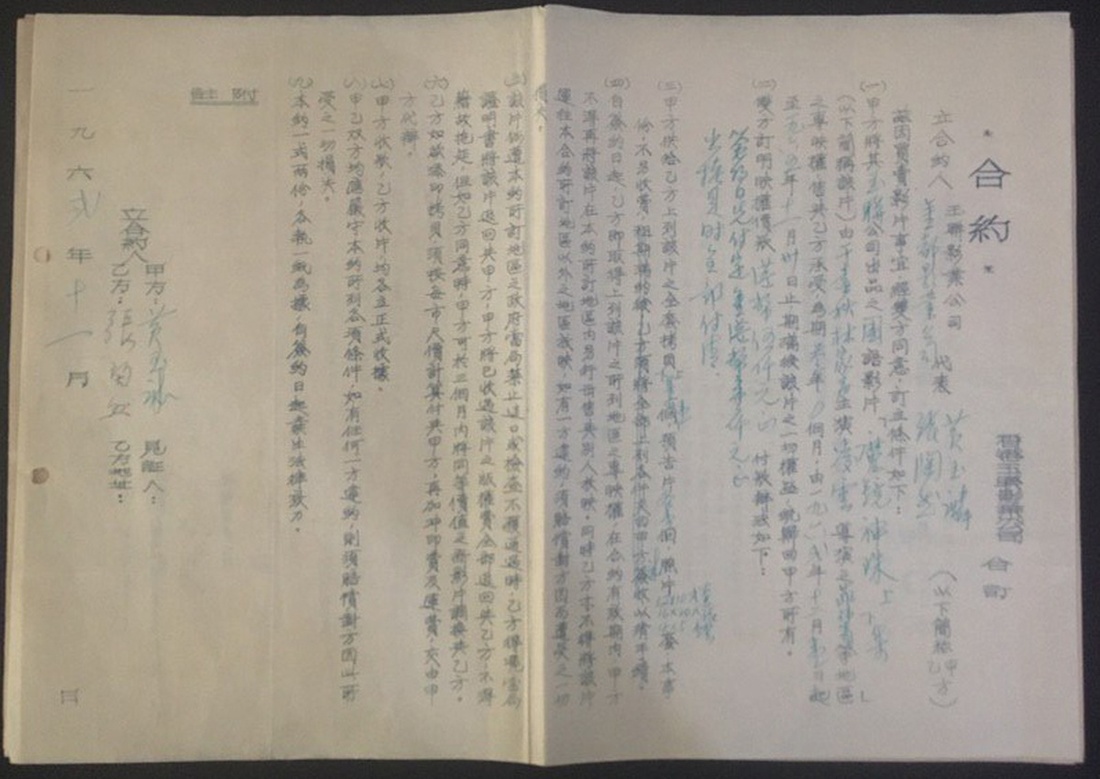 1962-1969 eight movie broadcast rights contract by Yulin Film Co. (1) and union Film (7). fine and very rare.