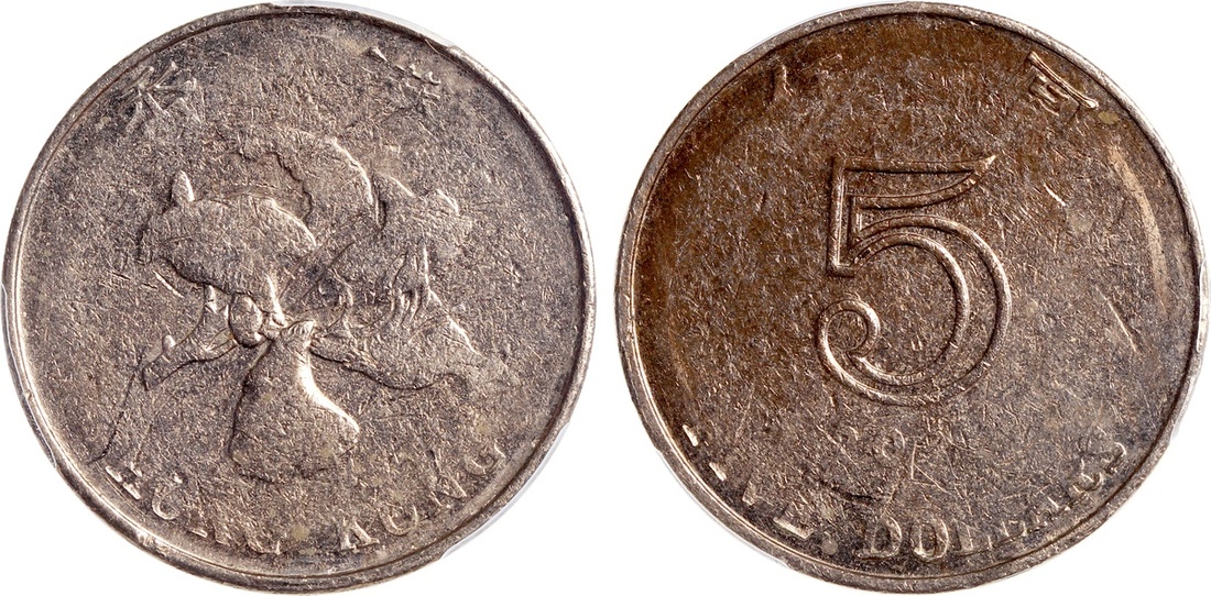 Hong Kong, cupro nickel $5, MINT ERROR, 20xx, struck through obverse and reverse,