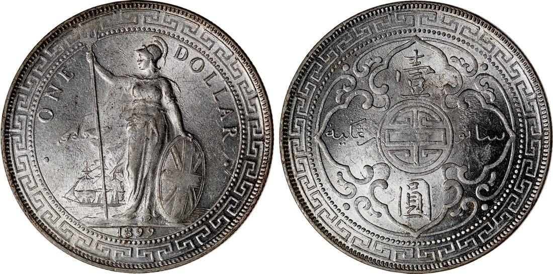 Great Britain, silver Trade dollar, 1899B, with luster, uncirculated.