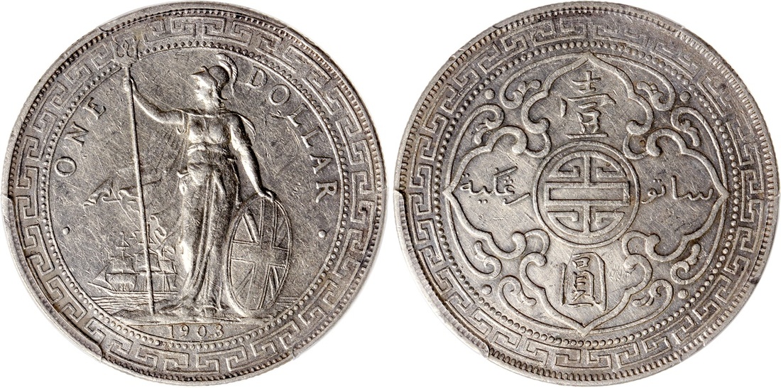 Great Britain, silver $1, 1903/2-B, trade dollar, (Prid-15 OD), PCGS Genuine Cleaned-AU Detail