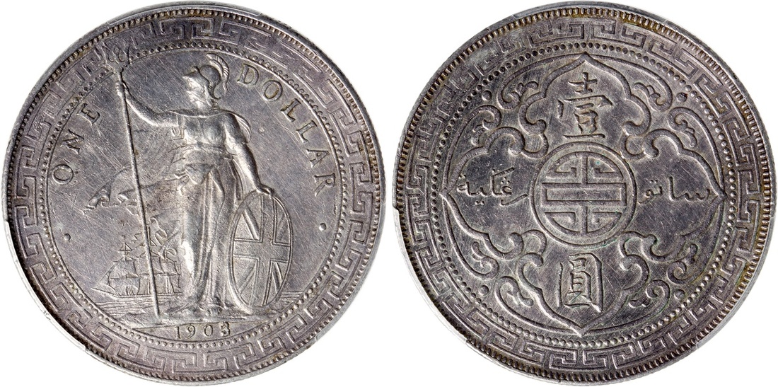 Great Britain, silver trade $1, 1903/2-B overdate, (Prid-15 OD), PCGS Genuined Cleaned - AU Detail