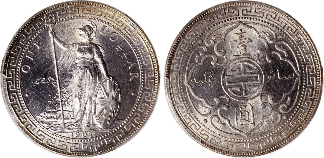 Great Britain, silver $1, 1907-B, trade dollar, (Prid-17), PCGS Genuine Residue-UNC Detail